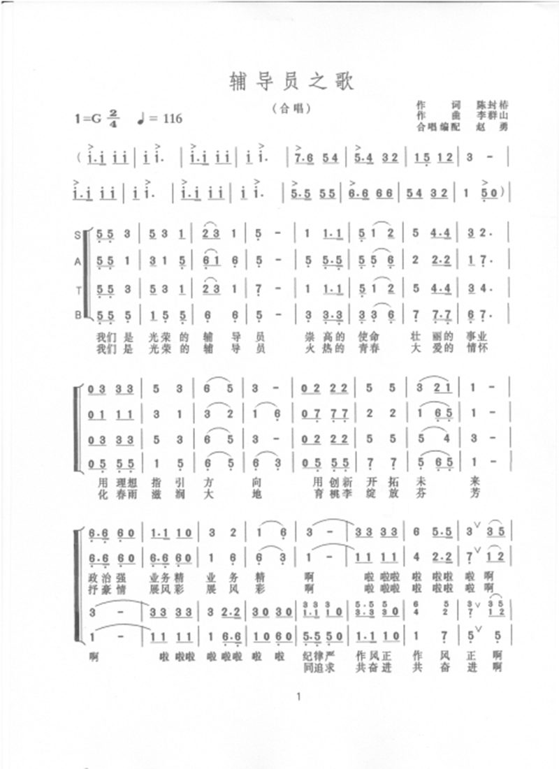 william威廉英国官网辅导员合唱团主曲目《辅导员之歌》词、曲