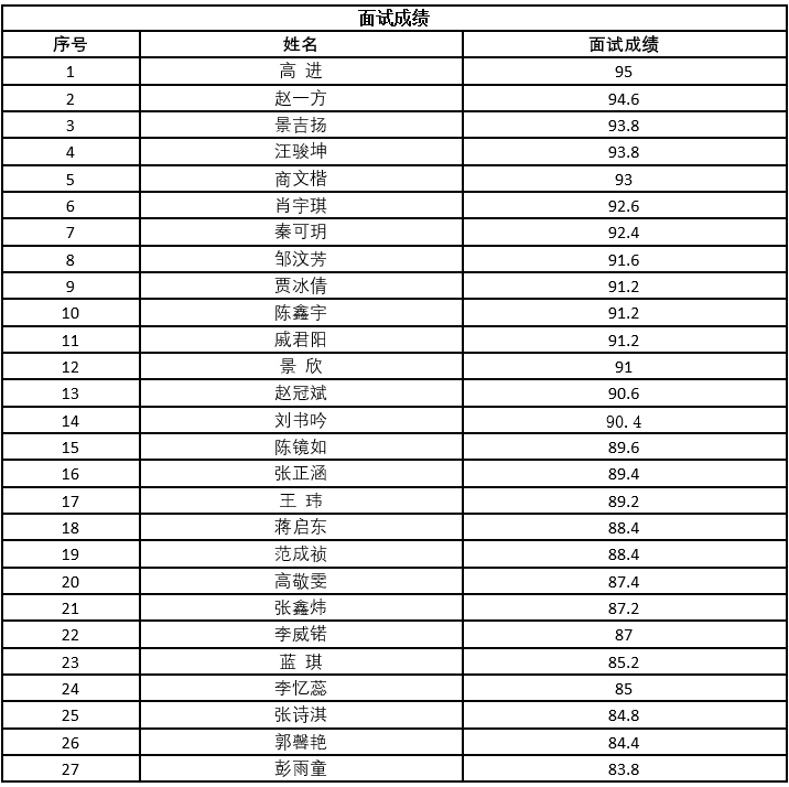 根据《关于william威廉英国官网选拔优秀推免生担任专职辅导员的通知》,现将面试人员成绩公布如下: