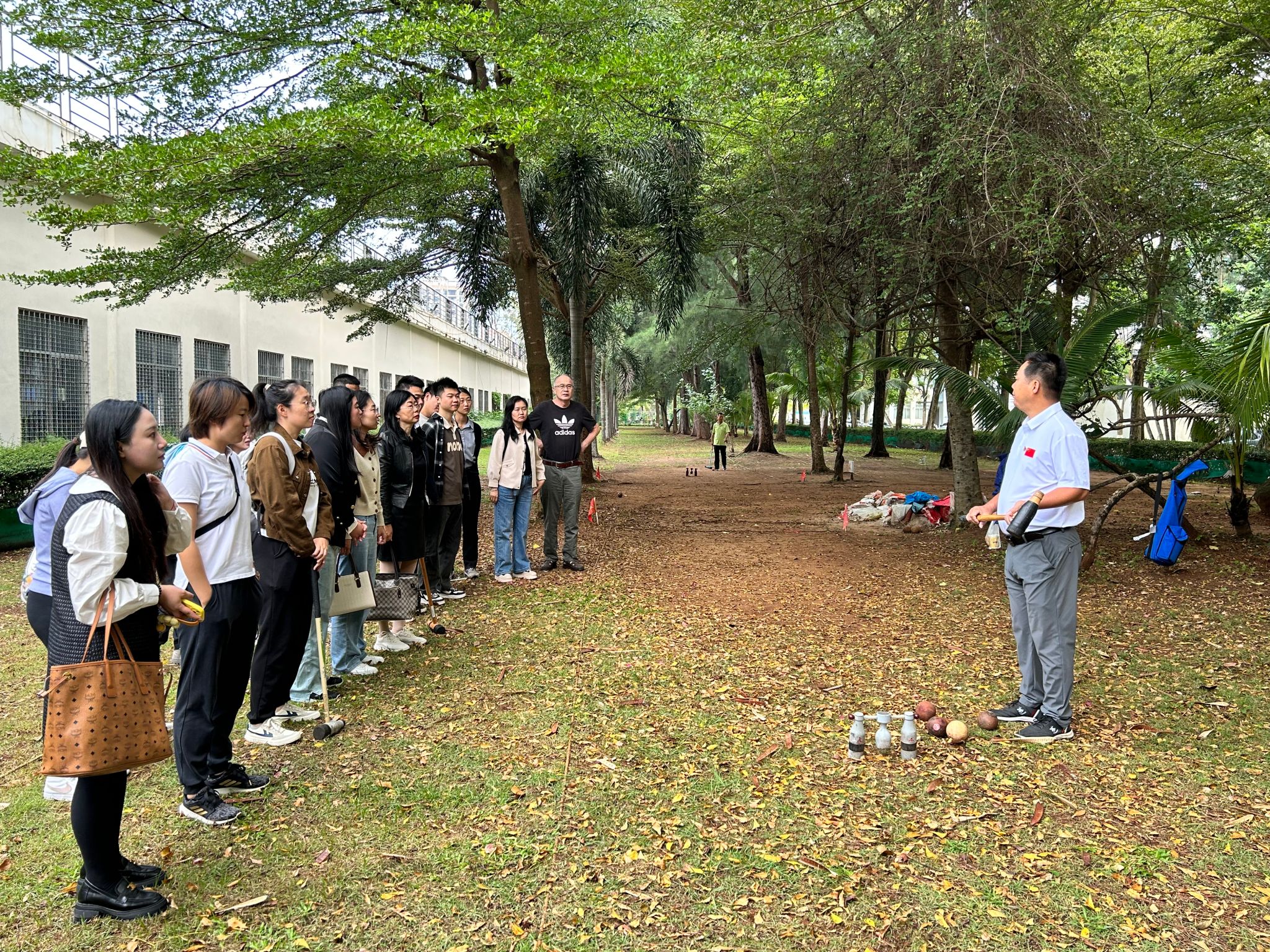 活动开始前,全体党员在学校金桥木球场集合,由支部党员、国家木球队成员王托带领大家开展木球训练,感受木球这一少数民族传统体育的魅力。