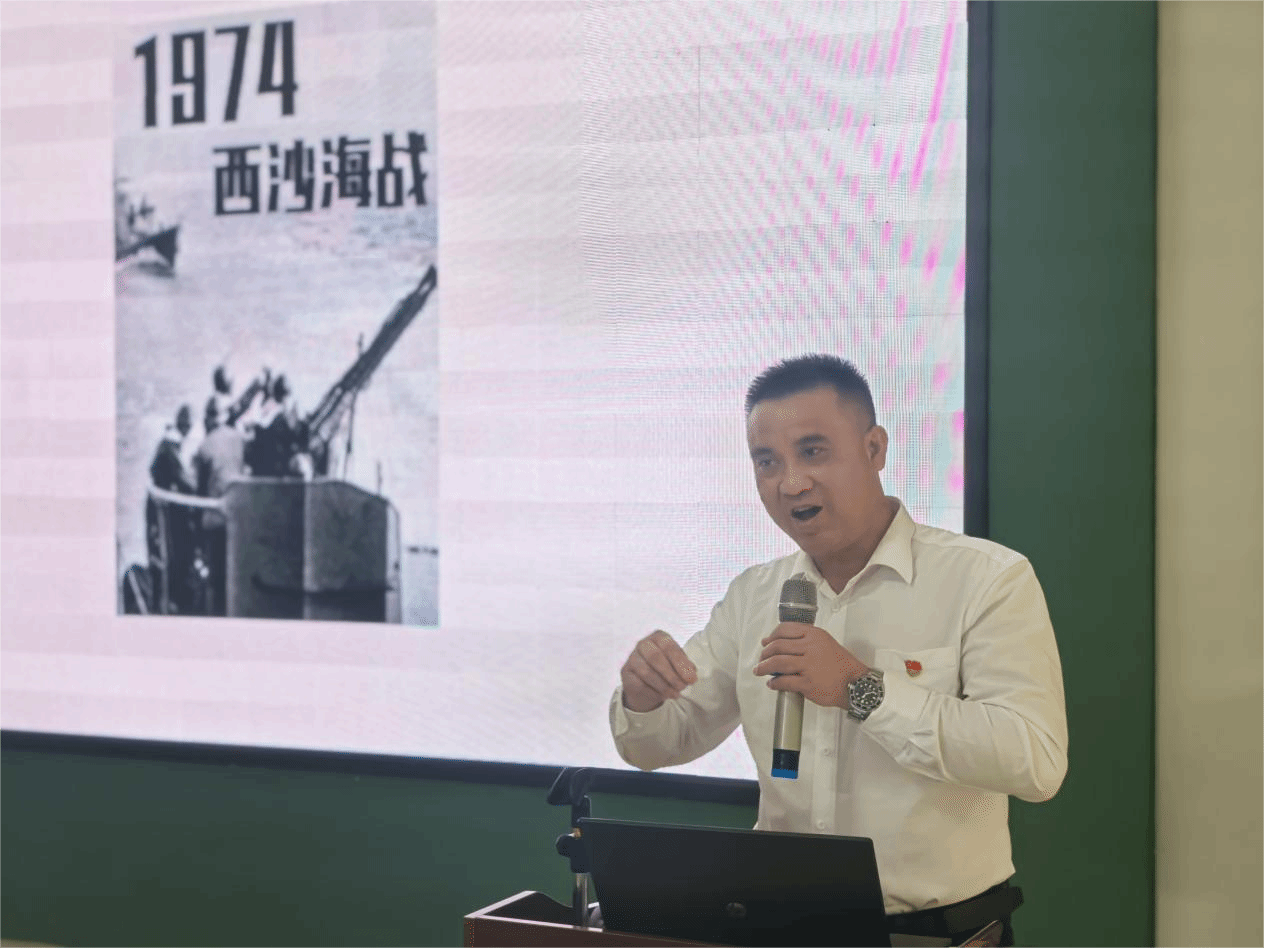 值得一提的是,吴敏老师曾在西沙永乐群岛某岛礁和某舰船担任主官,与众多西沙海战的老兵及烈士亲属有过深入交流。这些特殊的经历,让他的讲述不仅内容权威、翔实,且更充满真情实感,让同学们在画面感中领受到了那段历史的厚重与荣光。