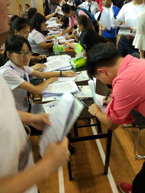 上午9时,联谊馆里人头攒动,前来寻找暑假兼职工作和了解情况的同学络绎不绝。招聘会现场气氛热烈,在众多招聘岗位中,餐饮服务类岗位和家教岗位最受应聘学生的欢迎,家教招聘区的应聘学生队伍排成了长龙。据统计,前来现场应聘的学生累计达到一千多人次。其中,共有540名学生初步与用人单位达成意向。