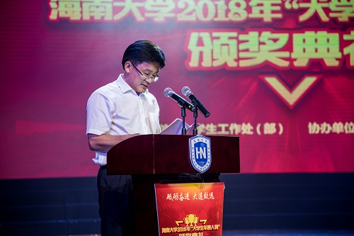受学校党委书记武耀廷和校长李建保的委托,校党委常务副书记廖清林在颁奖典礼上致辞。廖清林指出,广大青年要成为实现中华民族伟大复兴的生力军,肩负起国家和民族的希望,要在奋斗中释放青春激情、追逐青春理想,以青春之我、奋斗之我,为民族复兴铺路架桥,为祖国建设添砖加瓦。廖清林细数本次获得“大学生年度人物”和“大学生年度人物提名奖”的同学的突出事迹,并向全校同学提出了四点希望:一是要志存高远,培养自己的奋斗精神,做到理想坚定、信念执着,不怕困难、勇于开拓,顽强拼搏、永不气馁。二是要勤勉为学,牢固树立“梦想从学习开始、事业靠本领成就”观念,求真学问,练真本领。三是要知行合一,坚持以知促行、以行求知,坚持开拓创新、锐意进取,让创新创造成为青春远航的动力和能量。四是要久久为功,要有“咬定青山不放松”的定力和持之以恒的毅力,经得起挫折,耐得住寂寞,在迷惘时不沉沦,在磨难中不自弃。