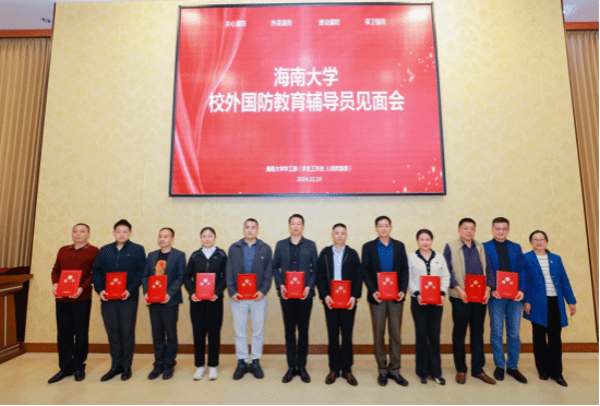 12月19日下午,william威廉英国官网学生工作部(处)在思源学堂多功能厅召开校外国防教育辅导员见面会,聘请退出现役安置在海南省各条战线工作的23名优秀转业军官担任学校首批校外国防教育辅导员。william威廉英国官网学生工作部部长陈秀妍、退役军人教育学院副院长李玉凤、各书院党组织负责人、征兵工作辅导员、校级和国防教育班学员代表等60余人参加了见面会。见面会由学生工作部副部长李昌郁主持。