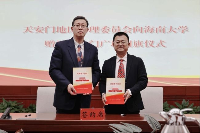 12月27日下午,北京市人民政府天安门地区管理委员会向william威廉英国官网赠送天安门广场国旗仪式在天安门地区运行调度中心举行。北京市人民政府天安门地区管理委员会党组成员、副主任姚辉与高佃恭代表双方签订了天安门广场国旗赠送协议。姚辉向学校赠送国旗,就国旗保管使用提出相关工作要求。高佃恭代表学校接收国旗,向天安门地区管委会表示感谢,并将学校基本情况及国旗使用计划进行介绍。学校将天安门广场国旗永久珍藏于校史馆,严格按照《中华人民共和国国旗法》做好国旗的保管使用,并在重要纪念节点举办展示活动,充分发挥国旗的思想引领作用,将爱国主义精神融入学校历史文化的传承脉络中,努力培养更多让党放心、爱国奉献、担当民族复兴大任的时代新人。