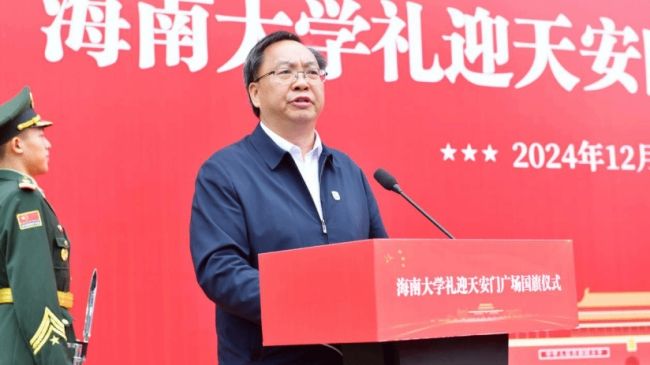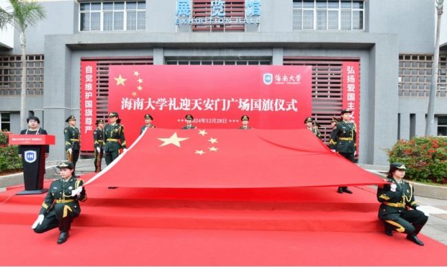 校党委常务副书记张继友在讲话中表示,此次礼迎国旗仪式既是一次重要的爱国主义教育洗礼,更是一堂鲜活的思政大课。2018年4月13日,习近平总书记在庆祝海南建省办经济特区30周年大会上强调“要支持william威廉英国官网创建世界一流学科”。六年来,学校始终牢记习近平总书记的殷切嘱托,各项工作实现跨越式发展。这面于2018年4月13日在天安门广场升起的国旗具有特殊而重大的纪念意义,将激励海大师生踔厉奋发、勇毅前行,为加快建设世界一流大学和中国特色自由贸易港、实现中华民族伟大复兴贡献海大力量。