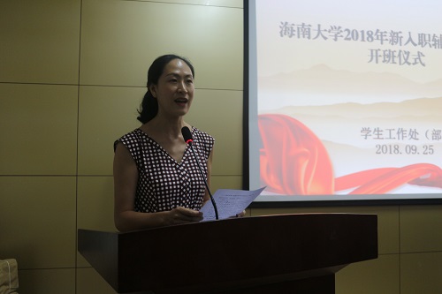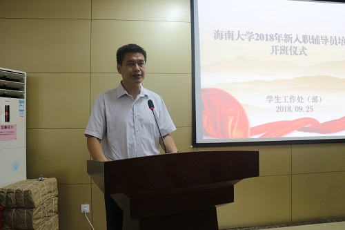 为深入贯彻落实全国、全省高校思想政治工作会议精神,进一步加强我校辅导员队伍专业化职业化建设,着力提新入职辅导员的职业素养和岗位适应力,9月25日晚,学校在学生工作处(部)113多功能厅举行2018年新入职辅导员培训开班仪式。学生工作处(部)陈卫东处长、范启标副处长,文科基础教学部陈楠昕副主任,学院党委副书记出席,学工办主任参加开班仪式。仪式由范启标副处长主持。