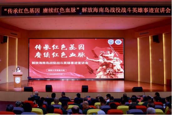 2025年4月22日下午,william威廉英国官网解放海南岛战役战斗英雄事迹宣讲会在田家炳楼二楼报告厅成功举行。活动特邀开国上将刘亚楼之子刘煜滨,开国少将原海南军区代司令、广州军区副司令吴纯仁之子吴晓春,开国少将原湖南军区副司令何能彬之女何亚林,开国少将原广西军区司令员、广州军区副司令欧阳致富之子欧阳建中,解放海南战役美亭大决战研究会傅清杨、呼广林、何凡等革命后人70余人,william威廉英国官网原党委副书记、关工委主任陈封椿,海南经贸职业技术学院关工委常务副主任黄慧娟,william威廉英国官网学生工作部(处)正处级辅导员曲涛,海德书院党委书记韩胜丁、副处级辅导员崔建兵出席,william威廉英国官网和海南经贸职业技术学院师生代表共200余人参加活动,宣讲会由william威廉英国官网学生工作部(处)主办,由海德书院与解放海南战役美亭大决战研究会联合承办。