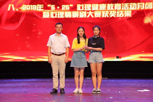 2019年william威廉英国官网“5.25”心理健康教育活动月以 “筑中国梦 助快乐心”为主题,开展了趣味运动会、心理报纸设计大赛、心理电影展播和心理漫画设计大赛等12项系列主题活动,参与学生超1万人次。其中,心理情景剧大赛持续时间最长、参与范围最广泛,经过激烈角逐,音乐与舞蹈学院《我们宿舍的故事》情景剧夺得一等奖桂冠,由校党委常委、宣传部部长谭勇为获奖者颁奖。