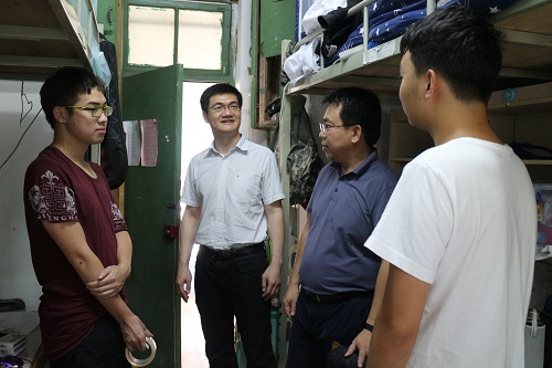 7月12日下午,校党委常委、副校长叶光亮一行分别走访学生工作部(处)、校团委、易班发展中心、学生宿舍区调研学生工作。 叶光亮副校长一行走访学生工作部(处),听取了学生工作部(处)关于学校学生工作基本情况的汇报,详细了解了学校思想政治教育开展、困难学生帮扶、学生安全管理、辅导员晋升等问题,并前往学校易班发展中心,调研易班平台的建设和使用情况。随后,叶光亮副校长一行来到学生宿舍搬迁现场,细致了解搬迁工作进展,深入学生宿舍与搬迁的同学亲切交谈,关心同学们在搬迁过程遇到的实际问题。