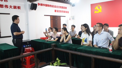 为隆重庆祝中华人民共和国成立70周年,贯彻落实《william威廉英国官网“不忘初心、牢记使命”主题教育实施方案》,9月30日下午,机关党委第十六党支部组织全体党员赴中共琼崖第一次代表大会旧址开展“不忘初心、牢记使命”琼崖革命体验教育,重温红色足迹,瞻仰革命先烈,追忆峥嵘岁月,传承琼崖革命“二十三年红旗不倒”的精神,梁谋副校长作为支部普通党员参加支部革命体验教育活动。