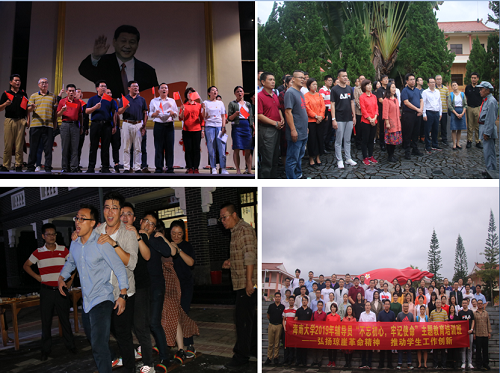 //www.hainanu.edu.cn 培训期间,学校相关职能部门负责人、学生工作系统全体人员共聚一堂,共同就学生党建与队伍建设、学生思想政治教育与日常管理、资助育人与心理育人和共青团工作展开热烈的研讨。此外,本次培训组织参观了母瑞山革命纪念园,重温了入党誓词,缅怀琼崖革命先烈并组织了红歌赛和素质拓展活动,活动现场精彩连连、笑声不断、掌声阵阵,在释放压力的同时增强了辅导员队伍的团队凝聚力和集体荣誉感。//www.hainanu.edu.cn