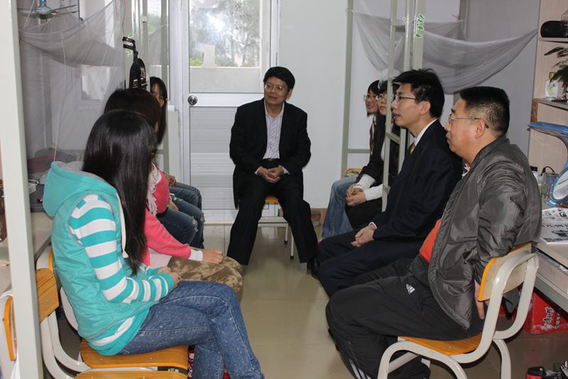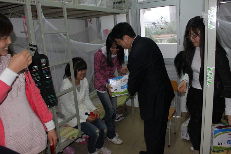 1月22日大年除夕,校党委副书记陈封椿带队到学生宿舍慰问春节留校学生,随行慰问的有学生工作处处长符成彦、副处长邓秀成、经济与管理学院副书记冯广波等。
