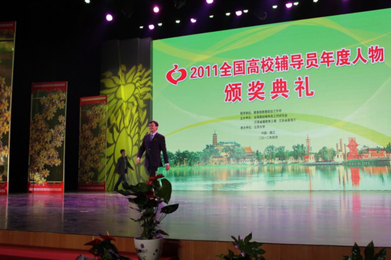 在颁奖典礼上,我校优秀辅导员林勇老师获得“2011全国高校辅导员年度人物提名奖”,“2011全国高校辅导员年度人物”评选活动由教育部指导,全国高校辅导员工作研究会、中国教育报共同主办。评选活动旨在宣传表彰一批长期以来、特别是2011年度取得了突出成绩,在为人师表、爱岗敬业、无私奉献等方面有突出表现的优秀辅导员,发挥先进典型的引领和示范作用,更好地调动和激励高校辅导员工作的积极性和创造性,进一步加强高校辅导员队伍建设。评选活动共收到来自全国31个省、自治区、直辖市和新疆生产建设兵团的640多名辅导员的推荐材料,共评选出“2011全国高校辅导员年度人物”10人、提名奖40人、入围奖150人。