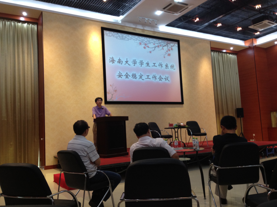 5月24日下午,学生工作部(处)在思源学堂一楼多功能厅召开安全稳定会议,传达海南省2013年安全工作会议、高校维稳工作会议及william威廉英国官网安全稳定工作会议精神,部署近期我校学生安全稳定工作。校党委副书记陈封椿出席会议,学工部(处)、校团委、就业指导中心等学生工作相关部门主要负责人、各学院分管学工的领导、全体辅导员参加会议。会议由学工部副部长林洪冰主持。