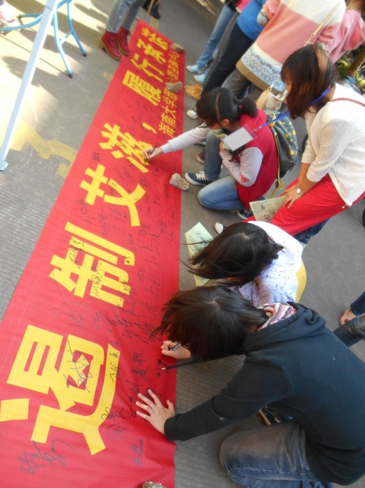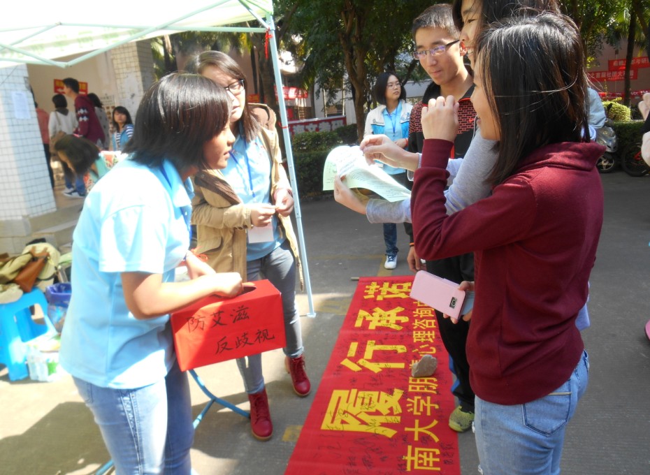 艾滋病看似遥远陌生,其实与我们的日常生活紧密相连。12月1日学生工作部(处)开展了“防艾滋病,从我做起”主题宣传教育活动,以促进大学生了解艾滋病,提高预防意识,提高自我保护能力、远离艾滋,促进“零艾滋”目标的实现。活动本着教育性和生动性的原则,开展了艾滋病健康知识有奖竞答、千人横幅签名等系列活动。