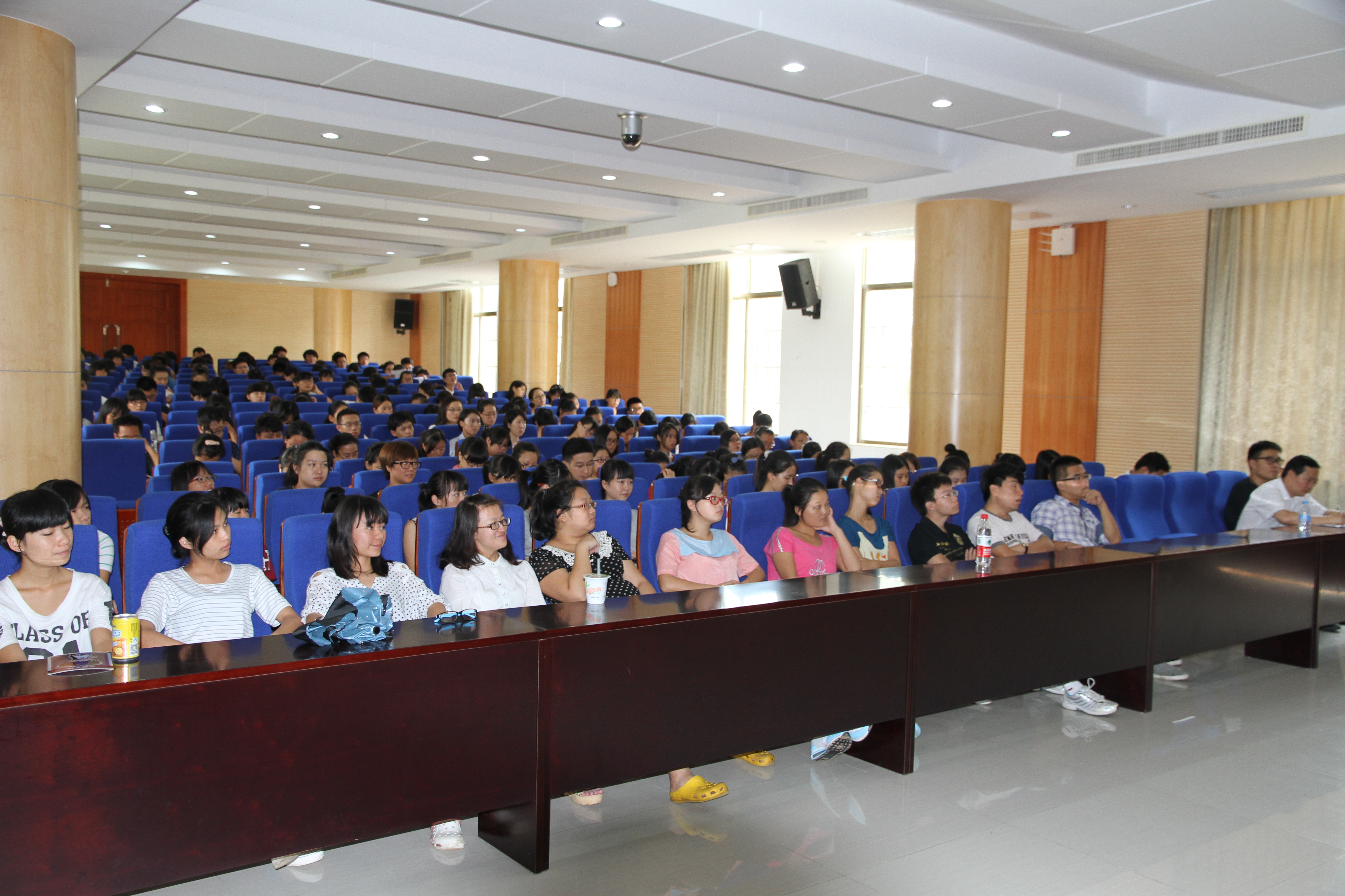 2014年6月12日下午,在我校行政办公楼一楼报告厅举办“学生安全教育宣传月系列活动——交通法规进校园”讲座。由海口市公安局交警支队法制宣传科陶晓明警官主讲。
