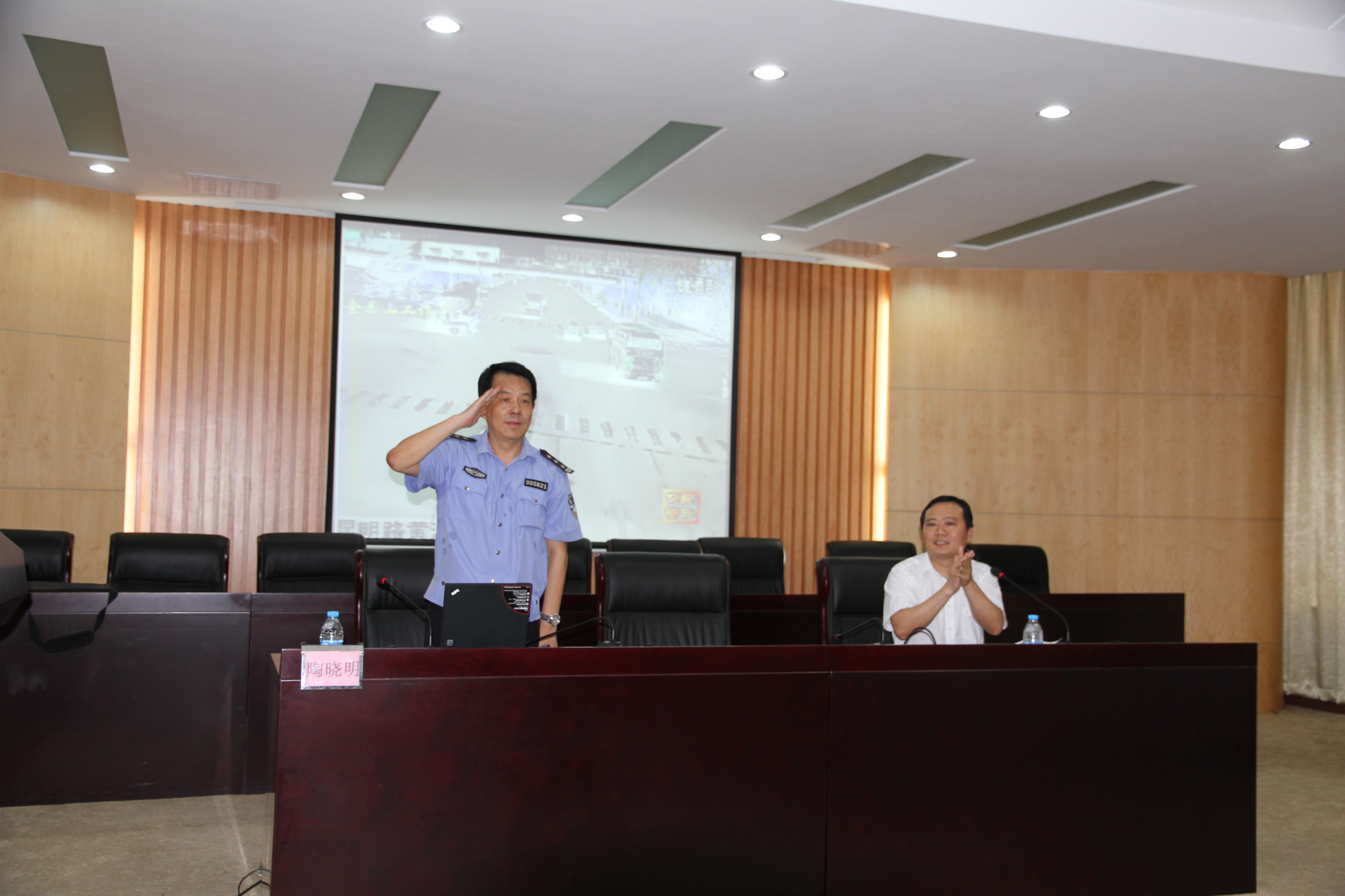 陶晓明警官向大家敬礼
