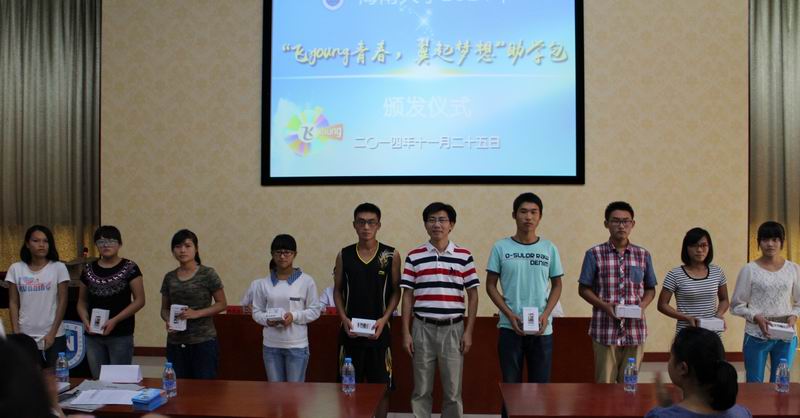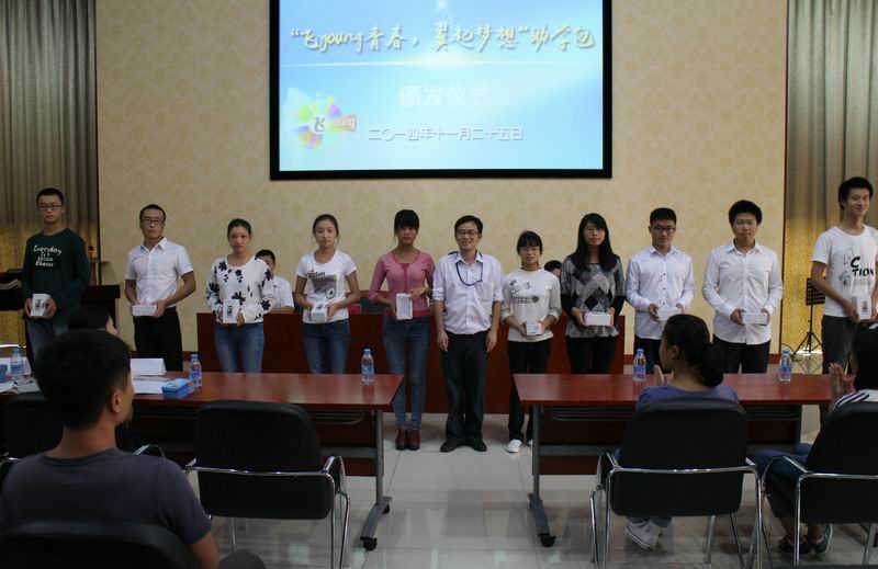 据悉,由教育部、中国电信和中国教育发展基金会共同发起的2014年“飞Young青春,翼起梦想”高校助学计划由中国电信集团公司向中国教育发展基金会捐赠72560个“助学包”,包括一部价值599元的海信大屏智能手机、一张包含240元通信费用的飞Young云卡,总计折合人民币6000万元,专项用于资助31个省自治区直辖市的500所高校的72560名2014年秋季入学的大学一年级家庭经济困难学生,同时提供10000个飞Young学子公司及飞Young部落勤工助学名额。我校130名2014级家庭经济困难学生获得了此项资助。