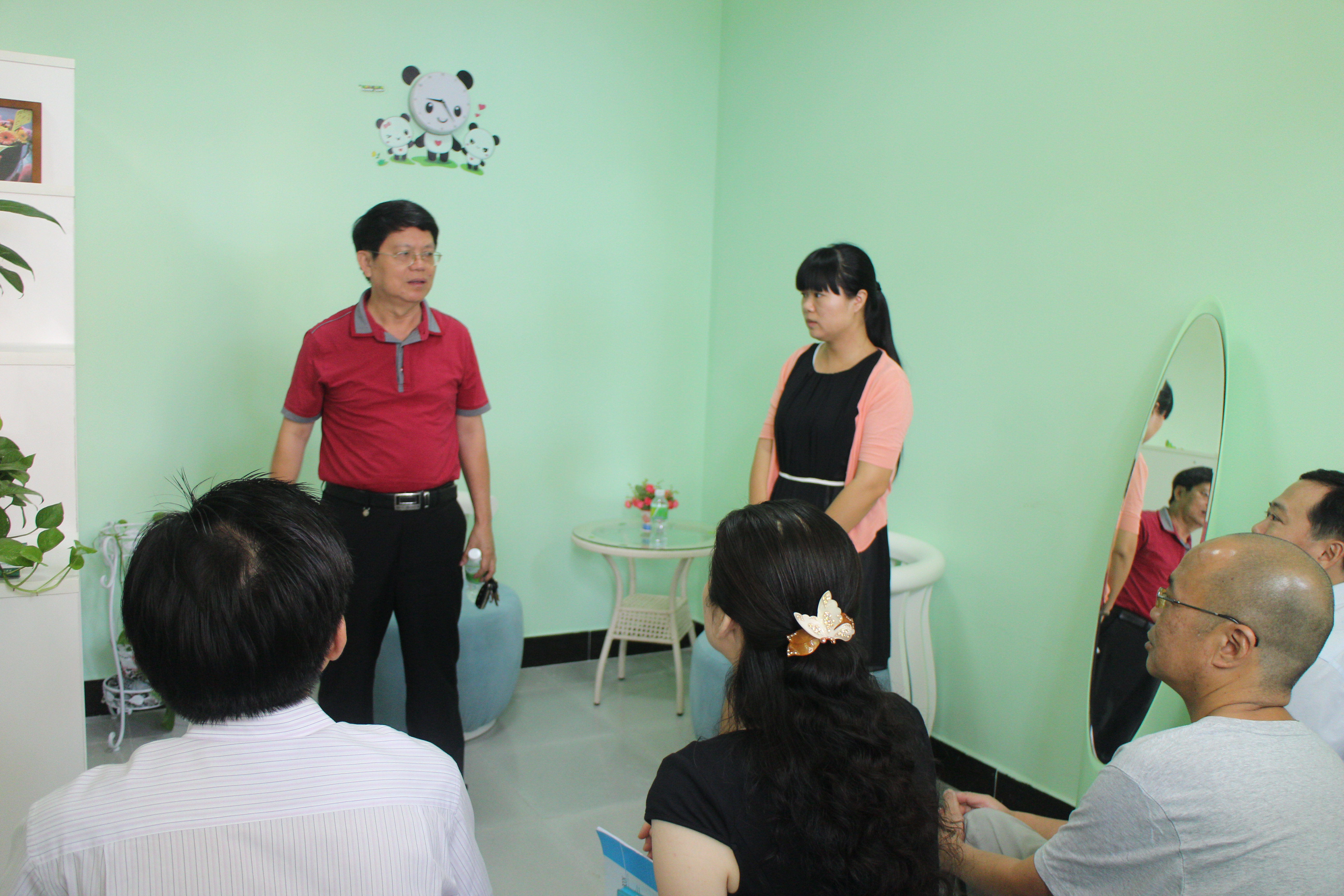 在装修布置一新的心理工作室里,陈封椿副书记查看和体验了各项办公设施、听取学院负责人汇报、了解建设情况。他为学生工作部投入经费、指导学院并与学院共建心理工作室,为学院拥有一个符合开展大学生心理健康教育工作需要的场地而感到满意。