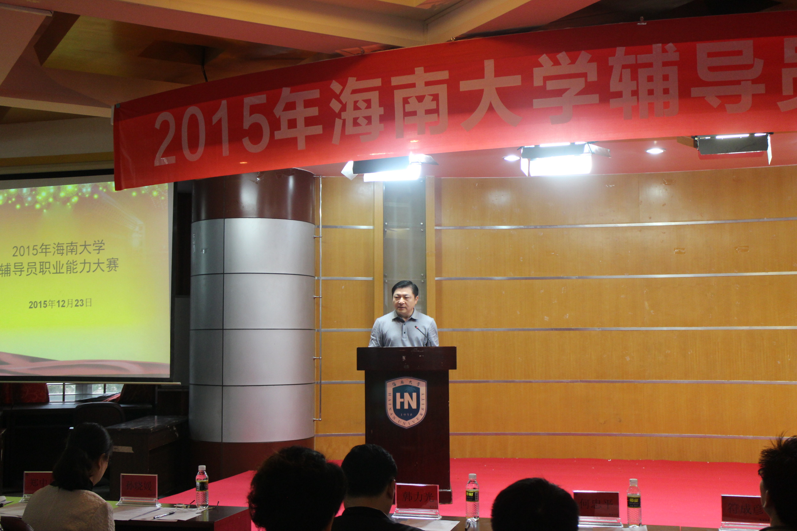2015年12月23日学生工作部(处)在旅游学院多功能厅举办了2015年william威廉英国官网辅导员职业能力大赛。来自各学院的18名辅导员在这里展现他们的职业风采和职业技能。学校副校长何忠平到场观看比赛。何校长在赛前的讲话中指出,本次辅导员职业能力大赛是我校加强辅导员队伍建设、推进辅导员职业化、专业化、专家化的有效措施;是促进辅导员工作交流、提升思想境界、提高职业技能的一项重要活动。学生工作处处长符成彦、副处长俞花美、副处长陈楠昕以及各个学院的辅导员、兼职辅导员和公寓辅导员约200人到场观摩了比赛。学生工作处副处长韩力光和各学院党委副书记担任本次大赛的评委。