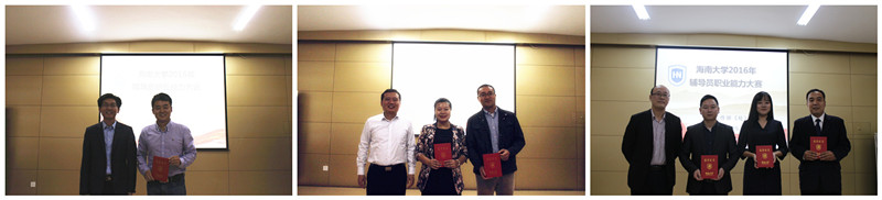 大赛为期两天,分为笔试、案例分析、主题演讲和谈心谈话4个环节,从多个方面考察辅导员对思想政治教育理论政策、学生特征、学生成长成才规律的了解把握及对学生的教育引导能力。其中“谈心谈话”环节最为精彩,以情景再现方式展现辅导员与学生、家长谈话的过程,考查辅导员面对面地开展思想教育的能力。面对“问题学生”的“刁难”和“易怒家长”的“质问”,参赛选手沉着应对,理性分析,机智应答。在短短6分钟的谈话中,既要找到问题本质,还要给出合情合理的解决方式或建议,你来我往的思想交锋和机敏智慧的对话,赢得了在场评委和观众的笑声和掌声。最终,材料与化工学院郑鹏老师荣获一等奖;旅游学院邹静老师、人文传播学院公衍峰老师荣获二等奖;信息科学技术学院齐昌盛老师、环境与植物保护学院田凌溪老师、海洋学院郭孝伟老师荣获三等奖。