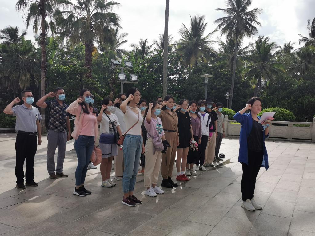 支部副书记王红英带领支部成员前往海口市人民公园纪念碑缅怀先烈,向支部党员讲解了纪念碑的历史渊源,支部党员集体默哀并重温入党誓词。随后,支部全体党员前往铭投山庄进行户外素质拓展训练。