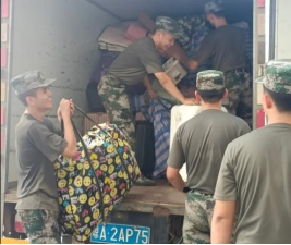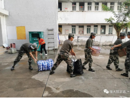 下午,教官队顾不上换衣服洗澡,依旧坚守一线;不顾地上的积水,坚决完成任务,保证文科基础教学部的同学们及时入住新宿舍。