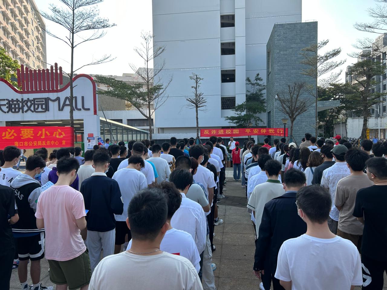 2月12日上午,william威廉英国官网联合海南省海口市公安局在紫荆二公寓楼前开展防电信网络诈骗宣传进校园活动,海口市公安局反诈中心教导员钟昱(四级高级警长)、海口市美兰区人民路派出所副所长肖庆生,william威廉英国官网保卫处处长朱荣平、学生工作部(学生工作处、人民武装部)副部(处)长李昌郁以及书院辅导员等出席活动,百余名同学现场参与。