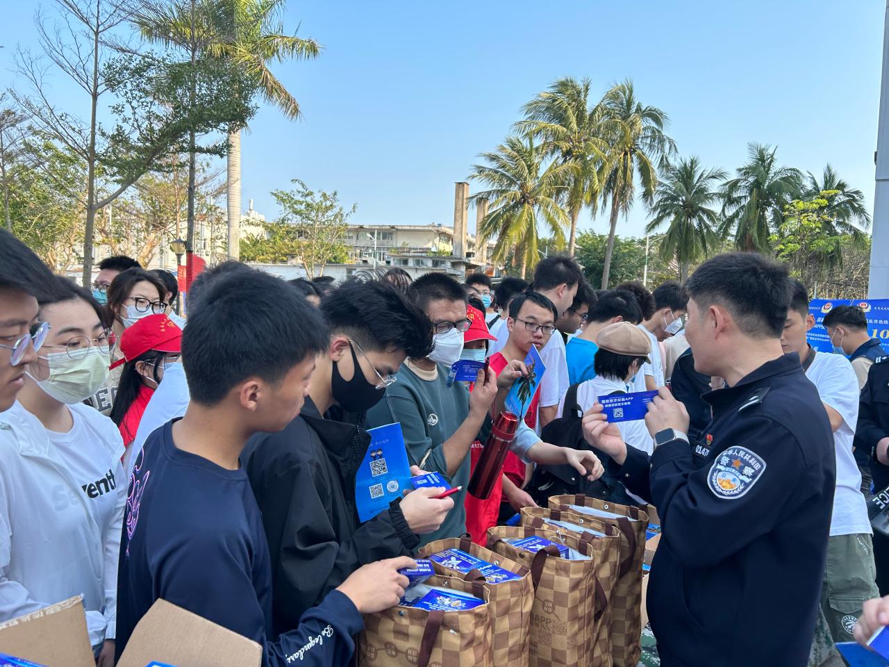 活动现场还为参与同学派发了宣传手册以及宣传品,公安民警近距离为同学们普及防骗防诈知识。