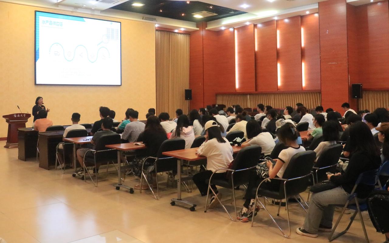 韩寒从先“为何关注渔业,为何需要公益组织”两个角度科普海洋科学与人文知识,引导同学们思考人海关系。韩寒讲述了其创立海南智渔可持续科技发展研究中心,关注渔业、渔村和渔民的“三渔”问题,服务基层政府、行业组织加强水产供应链和渔业社区公共治理,赋能渔民社区转型发展的实践故事,倡导大家践行“生态赶海”,助力实现“海豚生生不息,我们年年有渔”的美好愿景。
