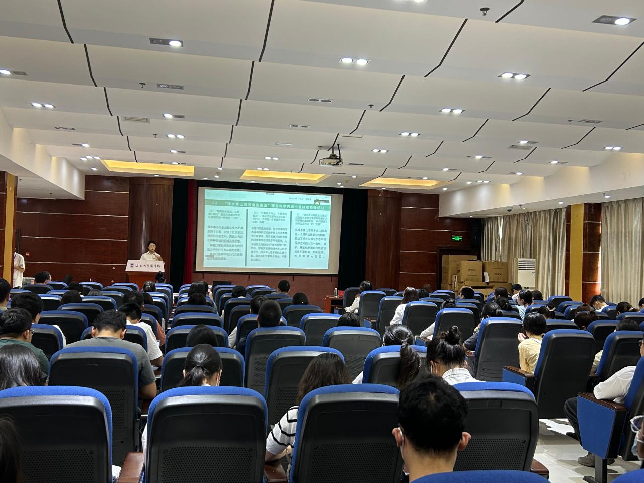 王善教授做《习近平新时代中国特色社会主义思想解读》专题报告,从创立背景、重大课题、主要内容、历史地位等方面深入解读习近平新时代中国特色社会主义思想,分析如何把握习近平新时代中国特色社会主义思想的世界观和方法论,重点从学、思、用贯通与知、信、行统一两个方面,为同学们学好用好习近平新时代中国特色社会主义思想作出指导。