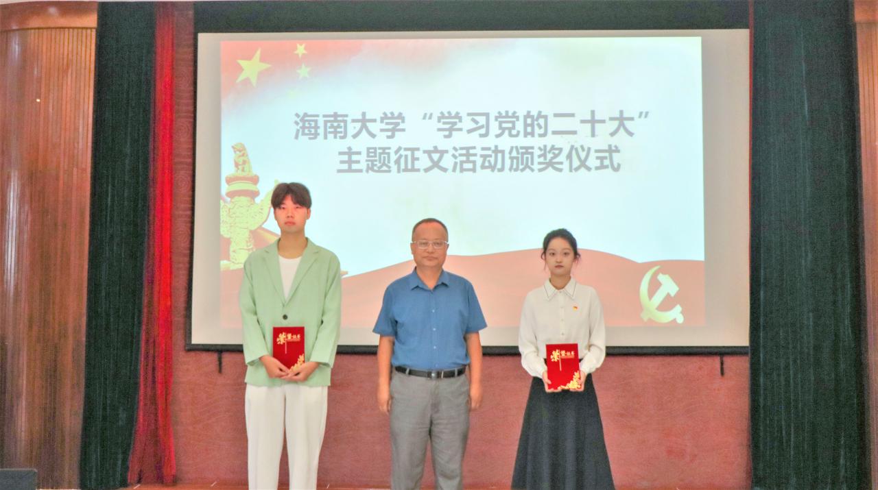 王善教授、李昌郁副部(处)长、吴新老师分别为“学习党的二十大 奋进新征程”主题征文活动一、二、三等奖获奖代表颁奖。