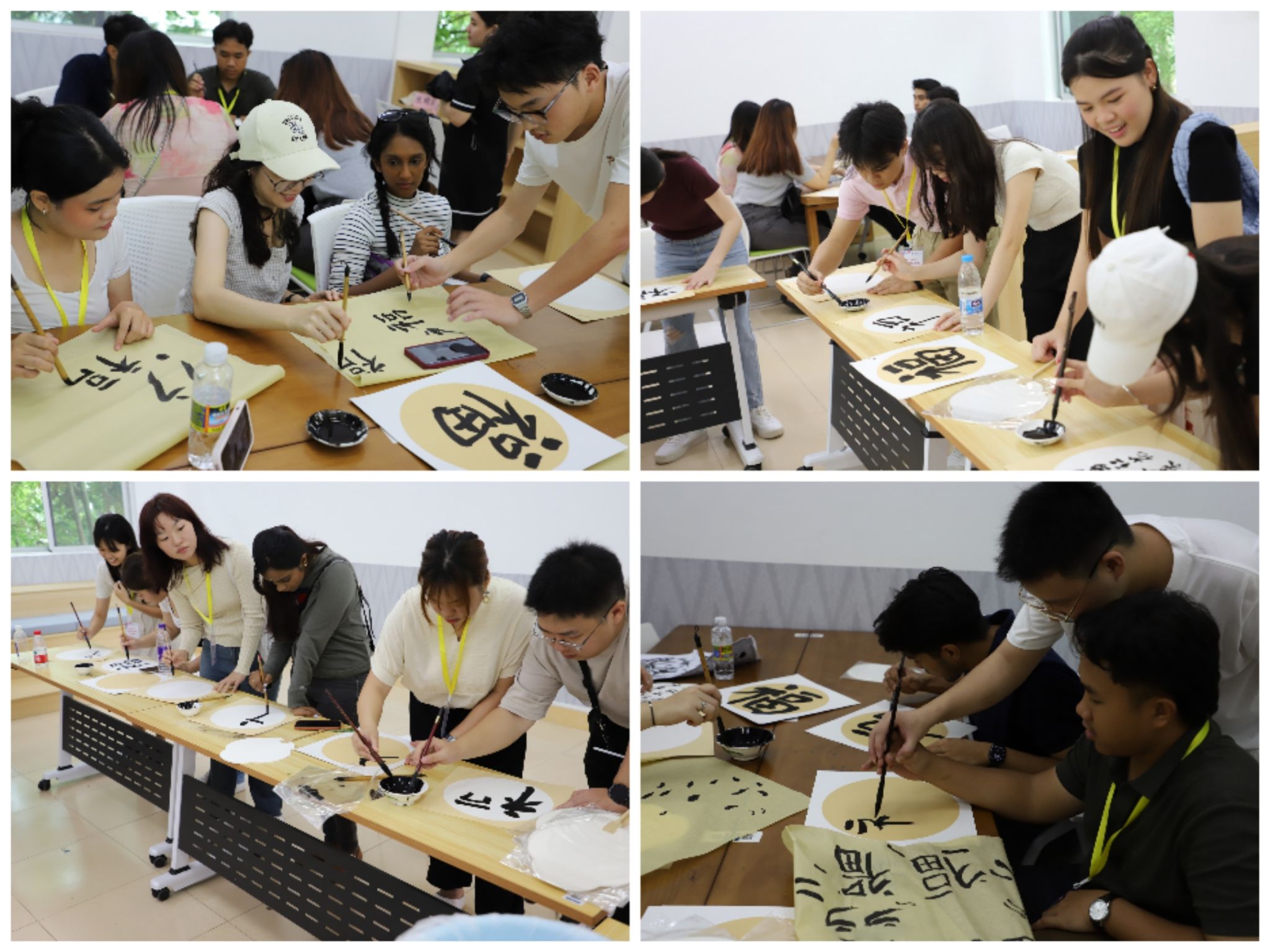 学员们观摩书法