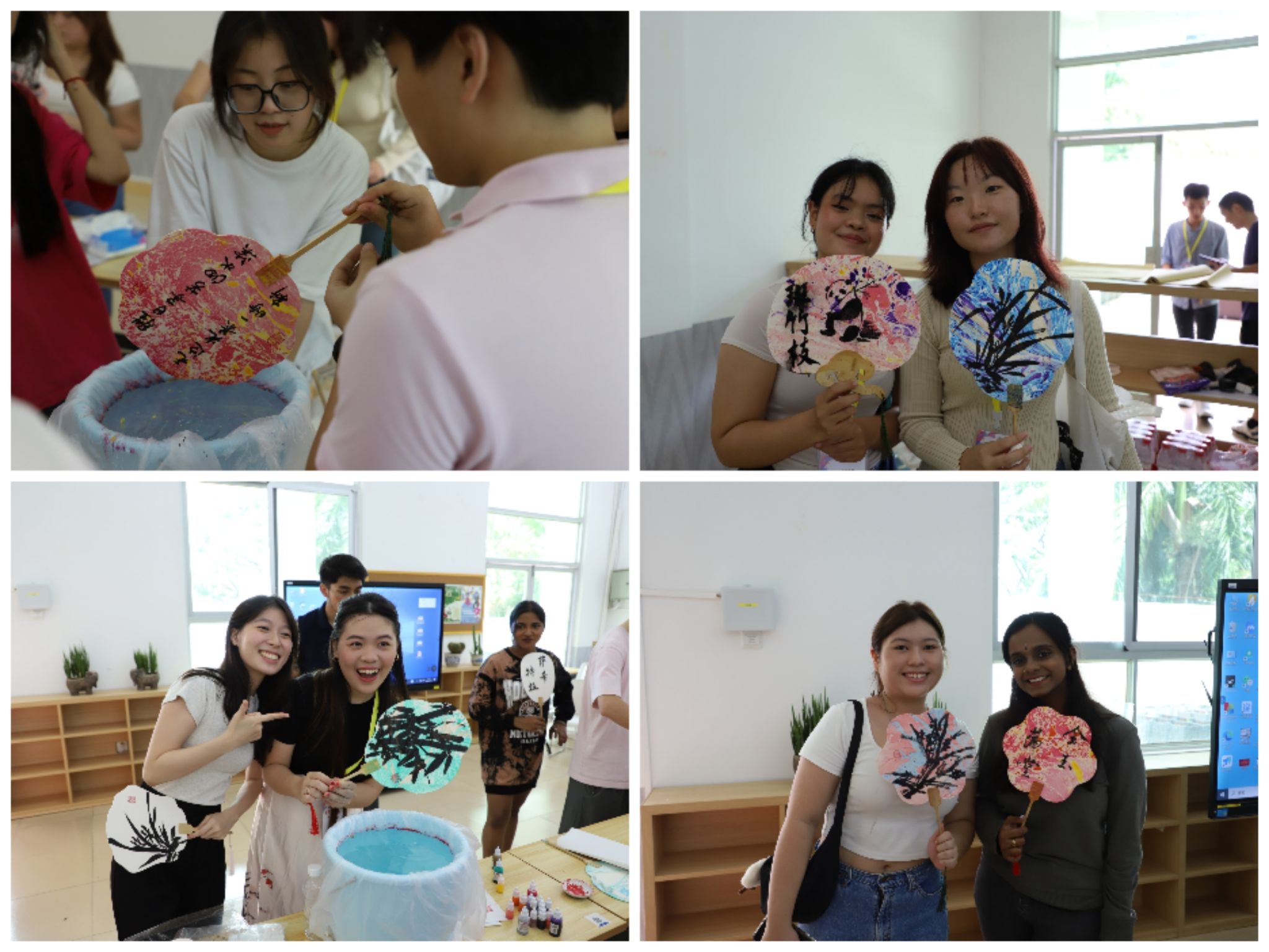 完成制作的漆扇晾干后,学生们互相欣赏作品,感受着从一门传统艺术中诞生出的个性化创作。大家都认为通过这种互动式与体验式的学习方式太棒了,展示了william威廉英国官网教育国际化的实践探索,推广了中华优秀传统文化的国际传播。