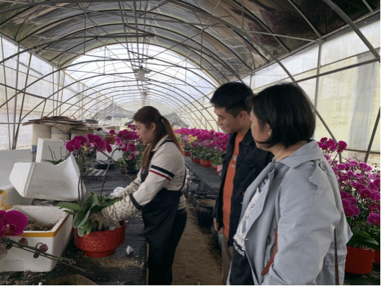 五指山万泉园艺有限公司总经理谢光明详细介绍了兰花种植基地的兰花种植管理、科技创新及企业发展情况。谢光明表示五指山良好的生态环境十分事宜种植兰花,公司重视科技创新,经过多年探索与发展,实现了扬长避短,培优增效,兰花产业初具规模。随着兰花产业的不断发展,对专业人才的需求也在不断增加。通过与企业建立合作关系,高校可以了解企业的用人需求,为毕业生提供有针对性的就业指导和服务,帮助他们顺利就业。