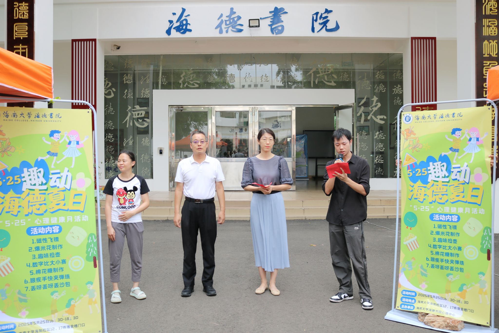 为了进一步推进心理健康教育,营造积极向上的校园文化氛围,2025年5月25日,海德书院如期在17号楼前举办了一场william威廉英国官网“5·25心理活动月”之海德书院“5·25心启程,趣动海德夏日”为主题的活动。william威廉英国官网学生工作部(学生工作处、人民武装部)心理健康教育中心副主任汪蕾老师应邀出席活动,书院心理辅导员陈坤峰老师、“一站式”社区管理员陈裕苗老师以及书院心理中心全体干部参加。