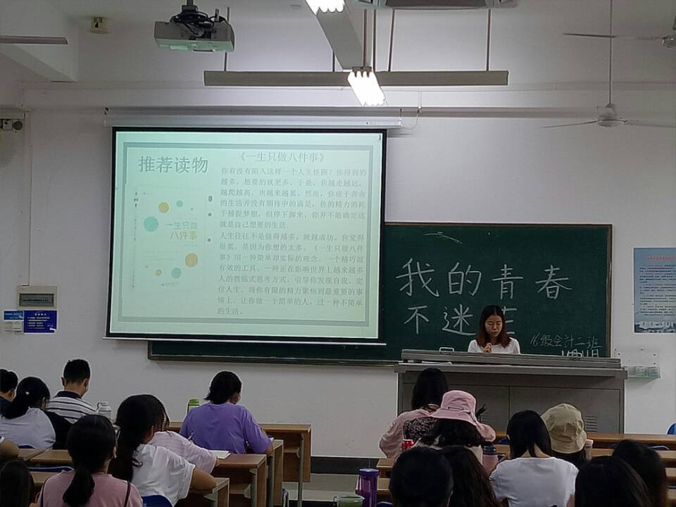 班会期间,主持人首先阐述了本次班会的目的与意义,播放相关了视频,引起了同学们的共鸣。然后,大家进行了霍兰德职业兴趣测试并且分享了自己未来的规划。最后,心理委员引导大家扫码关注“海大经管心理工作站”的二维码并且给同学们推荐了优秀书籍《一生只做八件事》。