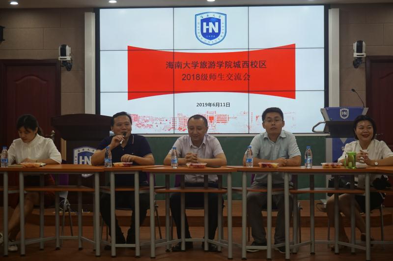 6月11日下午,旅游学院2018级师生交流会在城西校区举行。此次交流会旨在通过面对面的交流和互动,进一步了解大一学生在城西校区的学习、生活和思想情况,以增进学生与老师之间、学院之间的感情,帮助学生顺利过渡到海甸校区。学院郭强院长、韩力光副书记(主持党委工作)、学工办邹靖老师、罗富晟老师和白阳老师,以及各班团支书和学生代表近40人参加了交流会。