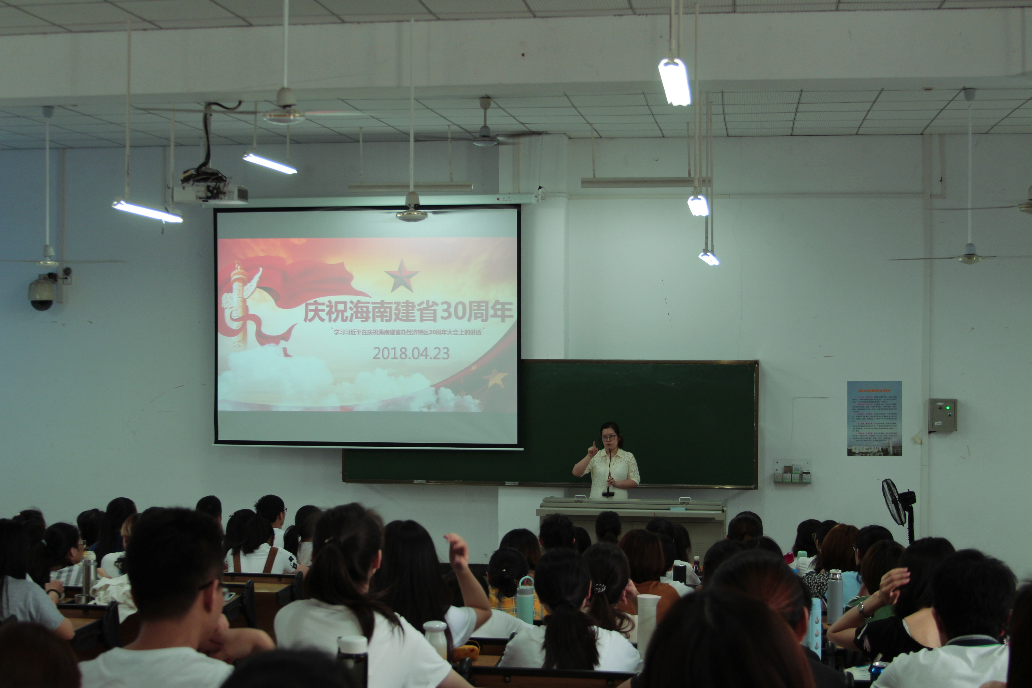 2018年4月24日经济与管理学院在5教114集体学习习近平总书记在庆祝海南建省办经济特区30周年大会上的讲话精神。会议由学院学工办主任杨扬主持,海甸校区学生代表及团学干部参加此次学习会议。