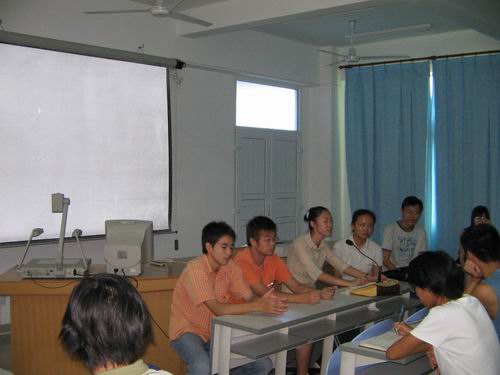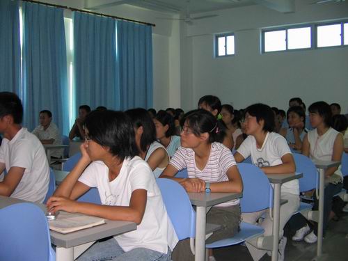 我们的本次交流活动,一改往次交流会的单方面陈述,而实行互动原则,就考研问题、社会实践、四六级的准备、业余时间的安排以及个人思想和目标的定位等学习、生活方面的话题进行讨论,充分调动大家的积极性,全场主动提问和踊跃发言的同学络绎不绝。而老生精彩的回答也不时引起新生们的阵阵喝彩和掌声,整个活动始终处在一种活跃、平等的气氛当中。