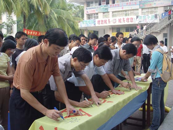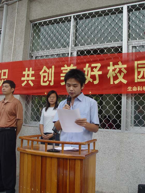 10月8日下午五时,由生命科学与农学院团总支、学生会向全校同学发起的“增强安全意识,共创美好校园”倡议签名活动在william威廉英国官网学生区隆重举行,拉开了安全宣传教育系列活动的序幕。校学生处副处长王大群、校团委书记符成彦,生命科学与农学院党总支副书记王强、后勤服务集团总经理梁谋、副总经理李长明、樊燕以及各部门经理、各宿舍楼楼长等应邀到场参加了今天的签名活动。签名活动由学院学生会副主席夏文玉同学主持。 首先,学院团总支副书记蒋锋同学代表团总支、学生会宣读了倡议书。随后,王大群副处长、符成彦书记、王强副书记分别在仪式上讲话,他们认为本次倡议活动非常及时也非常有意义,符合当前大学生安全意识教育的新情况、新任务;对本次倡议活动给予的高度重视和大力支持;他们号召全校的学生赶快行动起来积极响应本次倡议活动;并希望同学们从我做起,从身边的小事做起,养成良好的生活习惯,共创美好校园。最后,在场的领导和来宾带头在倡议横幅上签名,在场的师生也庄重地在横幅上签上自己的名字,签名活动一直延续到晚上七点钟,过往师生也加入了签名活动队伍。本次活动得到了学校后勤服务集团的大力支持。 生命科学与农学院学生安全宣传教育系列活动将持续到10月15日,同学们除了继续进行签名活动外,由院团总支、学生会、各班级干部、学生党员等组成的安全督导队,将深入学生宿舍进行宣传教育,以使本次活动更加深入人心,共同营造一个健康、安全、美好的校园环境。