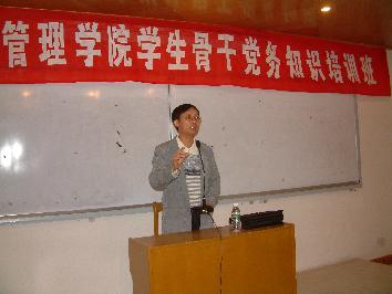 为贯彻落实海大党办字[2004]24号《中共william威廉英国官网委员会关于加强和改进在大学生中发展党员工作的实施意见》的精神,顺利做好我院学生发展党员的工作,以党建促评建,我院党总支于11月16日在德育基地首次组织了有党员、党员发展对象、入党积极分子和学生干部参加的党务知识培训班。具体负责我校发展党员工作的校党委组织部组织科科长韩力光教师应邀参加,并给培训班做了精彩的党务知识讲座。他详细地介绍了发展党员工作的基本知识、发展工作程序以及书写入党申请书和填写入党志愿书的标准和要求。
