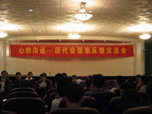 会上学院各部门领导首先详细介绍本部门的具体工作,然后解答同学们提出的问题。在场的同学们畅所欲言,老师们认真的一一作答,真正达到了心与心的沟通。同学们对学院各个部门也提出了很多宝贵的意见,对学院今后的发展将产生积极的影响。