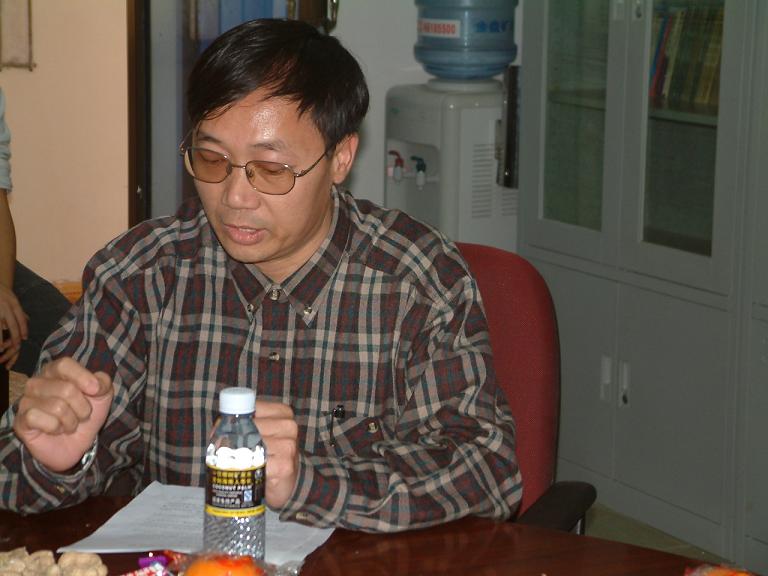 院党总支王默忠书记在主持茶话会