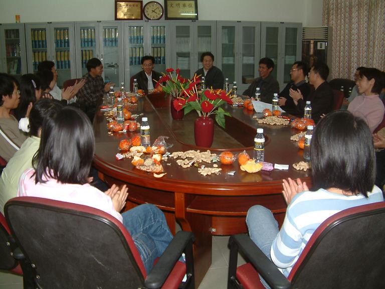 2005年2月4日下午,政治与公共管理学院2005年春节茶话会在院会议室举行,到会的有校人事处黄恒处长,人事处欧先德副处长,政治与公共管理学院党总支王默忠书记,院长张治库博士,副院长胡斌武博士,副院长李德芳博士,部分老师及40多位在校过春节的学生。