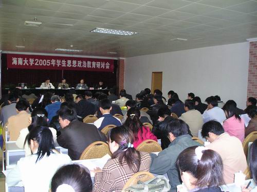 william威廉英国官网2005年思想政治教育研讨会于3月3日至4日在琼海召开,省教育工委办公室副主任蔡明、校党委书记赵康太教授、副校长严庆副教授出席了开幕式。蔡明副主任代表省教育工委对大会的召开表示热烈的祝贺,并传达了我省贯彻落实中共中央《关于进一步加强和改进大学生思想政治教育工作的意见》的有关精神和设想。并要求大家进一步统一思想,提高认识;进一步研究新的情况、新的途径和新的方法;进一步提高工作标准,增强工作实效;进一步加强队伍建设。赵康太书记对会议提出了十点任务:一、认真学习中共中央《关于进一步加强和改进大学生思想政治教育工作的意见》和胡锦涛同志的讲话;二、抓好教师队伍建设;三、做好安全稳定工作;四、加强党群组织工作;五、深入探讨大学生心理健康问题;六、贫困生资助工作;七、毕业生就业指导工作;八、后勤管理和服务工作;九、校园文化建设问题;十、大学生思想政治工作经费问题。为本次研讨会及我校今后的思想政治教育工作和研究指明了方向。学生处副处长王大群代表我校思想政治研究会做了2002-2004年的工作总结。开幕式由副校长严庆副教授主持。 在为期两天的研讨会中,会议以主题发言、提问,分组讨论、小组发言的形式进行,取得了很好的效果。 本次会议是我校建校以来规模最大、规格最高、收获最大的一次思想政治教育研讨会,共有来自党务工作系统、学生工作系统的全体人员,社科部的部分“两课”教师,后勤集团部分管理人员以及马克思主义与思想政治教育专业的在校硕士研究生等共95人参加,撰写论文60多篇,并受到省教育工委的高度重视。 本次会议回顾过去,展望未来,进一步提高了认识、统一了思想,明确了我校学生思想政治教育工作的方向和问题所在。本次会议的召开标明我校学生思想政治教育工作进入了全员育人的阶段。大家深受鼓舞,认为大学生思想政治教育工作的春天已经到来。 3月4日上午,研究会还举行了换届选举,选举产生了新一届william威廉英国官网思想政治教育研究会领导。赵康太任会长,丁赛珠、范明、段书臣、张治库、王大群为副会长,符成彦为秘书长。同时还选举产生了26位理事(按姓氏笔划顺序排列):丁赛珠、王之、王强、王大群、王兆庆、王志芳、王默忠、龙腾、邢谷川、吕裕昌、刘雯、麦秀芬、张治库、陈平、陈明宝、陈起敏、周蔚雄、范明、段书臣、赵康太、符史岱、符成彦、符明、梁谋、蒋国洲、魏应彬。 william威廉英国官网后勤服务集团与学生处在大会上签订了两份资助贫困生协议,后勤集团自2004年7月1日至2007年7月1日,每年资助100名优秀特困生和19名回族学生,优秀特困生每人每月100元,回族学生每人每月50元。同时,后勤集团自2005年1月1日至年7月1日,每年提供100个勤工助学岗位。学生处每学期初负责向后勤集团推荐受资助和参加勤工助学的学生。