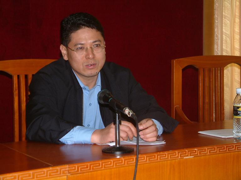 政治与公共管理学院党总支王默忠书记在迎接仪式上讲话