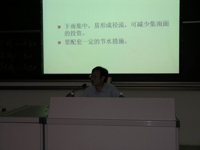 杨好伟教授在集水农业方面有丰富的实践经验。在报告中,他针对目前全球性的干旱问题,分别从海南的旱情;集水农业的发展;国内外集水农业概述;海南的水资源概况;集水农业在海南的可行性分析等方面做了论述。杨教授通过大量的实例介绍了我国内地干旱地区集水农业的情况,详细分析了海南的地理气候环境,提出了运用集水农业解决海南的干旱问题的思路。 报告会上,杨教授回答了师生的提问,并和师生一起探讨海南的节水工程。报告会现场气氛活跃,师生们受益匪浅,进一步了解了海南的旱情,增强了教农学农务农的决心和信心。