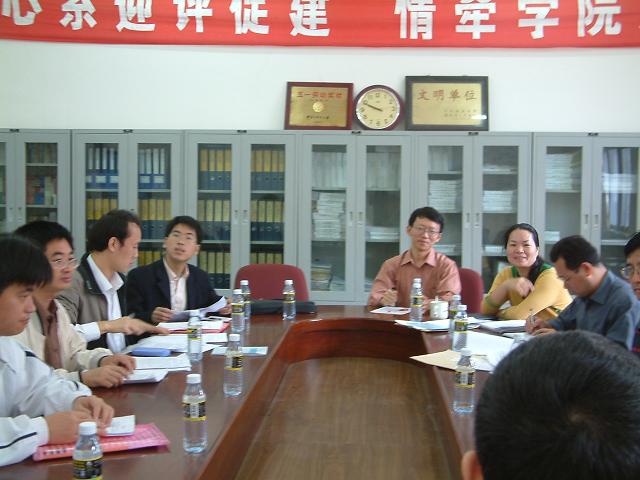 2005年4月6日上午8:00,我院在院会议室召开了2003级马克思主义理论与思想政治教育专业硕士研究生中期考核会议,参加会议的有研究生导师曹锡仁教授、赵康太教授、张治库副教授、李德芳教授、李英华副教授,院党总支王默忠书记、副院长胡斌武博士和03级全体研究生。会议由副院长李德芳教授主持,研究生秘书蔡泽如老师做会议记录。 在会议上,03级10名同学依次就入学以来的学习收获、科研情况、主要缺点向导师们作了较为详细的汇报,并回答了导师的提问。曹锡仁教授和赵康太教授对同学们的发言作了总结,认为03级研究生在两年的学习时间里整体上有很大的进步,但也存在不足,希望同学们继续保持良好的学习状态,为毕业论文的写作和以后的研究打好坚实的基础。最后,李德芳教授对后面一段的学习作了具体安排。同学们衷心感谢各位老师一年多来的悉心教导,表示要继续努力学习,更上一层楼。