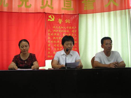 7月1日下午3点,我院学生党支部75名党员和部分入党积极分子齐聚学院会议室,隆重举行新党员宣誓大会。 会上党总支书记刘雯致辞,向新党员表示热烈祝贺,并要求他们在今后的工作学习中,充分发挥党员的模范带头作用。随后,自去年12月以来加入党组织的54名党员面对党旗,庄严宣誓,决心为共产主义事业奋斗终身。 宣誓完毕,新党员代表和入党积极分子代表也分别向党表了决心。 宣誓大会肃穆而热烈,在庄严的《国际歌》声中结束,使在场的每一位党员都重温了入党誓词,受到了一次很好的党员先进性教育。